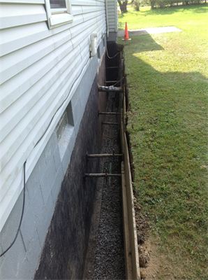 Basement waterproofing in progress